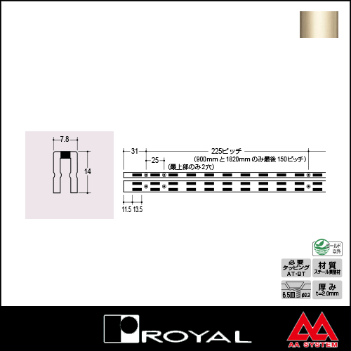![]() 価格: 1,040円 レビュー評価:0.0 レビュー数:0 商品名 ロイヤル チャンネルサポート(シングル) ASF-10 1500mm Aニッケルサテン 品番 ROYAL-ASF-10-1500N サイズ 7.8 x 14mm 長さ 1500mm 厚み 2.0mm ビス穴数 8 (3.3φ穴-6.5φ皿 225ピッチ) 必要タッピング Aタッピング(AT-P) Bタッピング(BT-P) ※別売 材質 スチール異型材 色 ニッケルサテン 付属品 この商品に付属品はございません 納期 通常1?2営業日ほどで発送可能です 返品・交換 こちらの商品は返品・交換が不可となります 備考 ・切断対応は可能です。(※別途切断費用が必要です) (更新日時:2019/01/30 12:04) Supported by 楽天ウェブサービス |