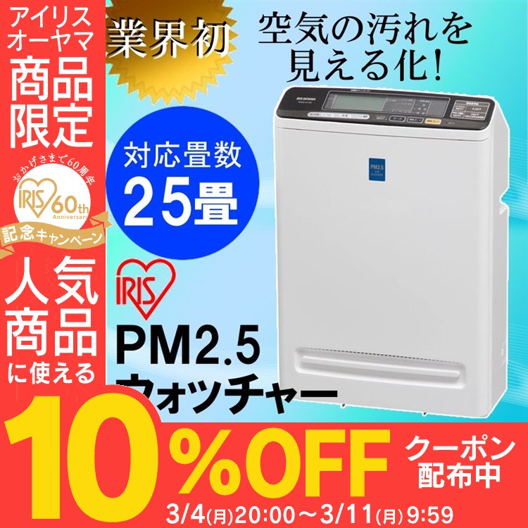 価格: 18,690円 レビュー評価:0.0 レビュー数:0 「アイリスオーヤマ60周年記念」気になるお部屋の環境を常に管理! 液晶パネル搭載によりPM2.5、ハウスダストの濃度を表示し洗浄力を確認することが可能☆ ターボモードでファンが高速回転し、お部屋の汚れた空気をぐんぐん吸い込みハイスピード洗浄します♪ 集塵フィルター(HEPAフィルター)活性炭フィルター・プレフィルターが高い空気洗浄を発揮し花粉・ほこり、においを除去! 風量4段階切り替え(静音・標準・強・ターボ)が可能。 センサーのお掃除時期やフィルターの交換時期にはランプがお知らせ! ●商品サイズ(cm):幅約40×奥行約20.1約58.6●重量(約):5.6kg●材質:ABS樹脂●適用床面積:約25畳(41m2)●コード長:約2m●電源:AC100V●風量調節:静音、標準、強、ターボ●消費電力(50/60Hz)・静音モード運転時:4W・標準モード運転時:8W・強モード運転時:55W・ター (更新日時:2019/03/07 17:31) Supported by 楽天ウェブサービス |